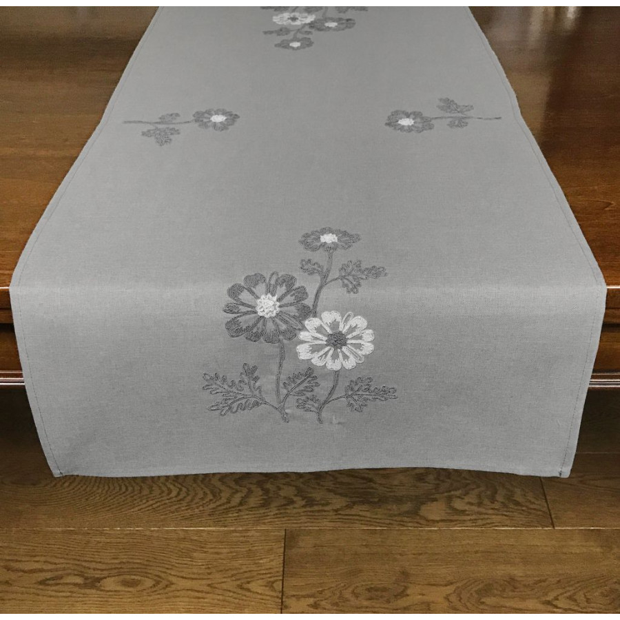 Behúň s kvetinovou výšivkou v sivej farbe