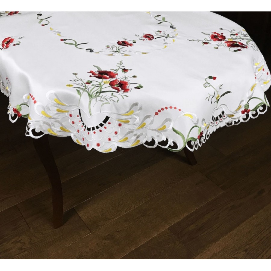 Biely dekoračný obrus s kvetinovým motívom