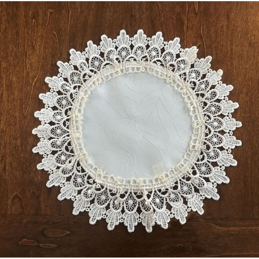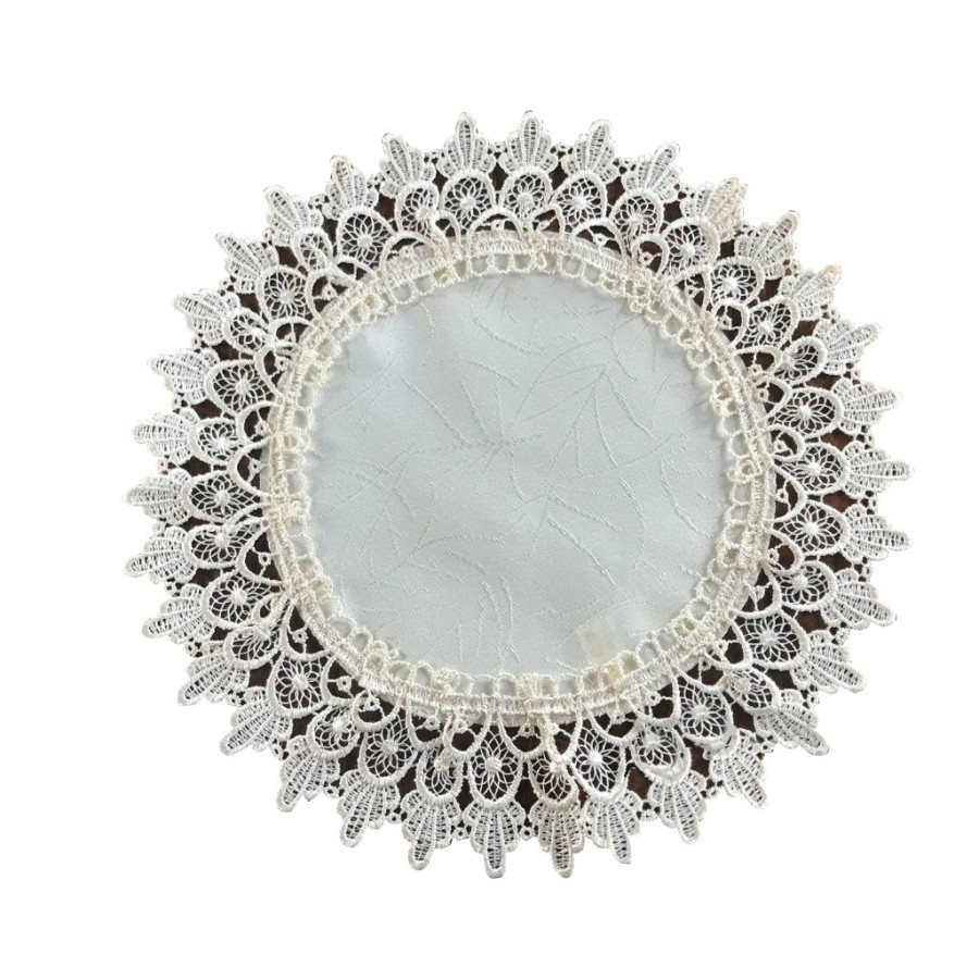 Obrúsok kruhový s čipkovaným lemom v béžovej farbe