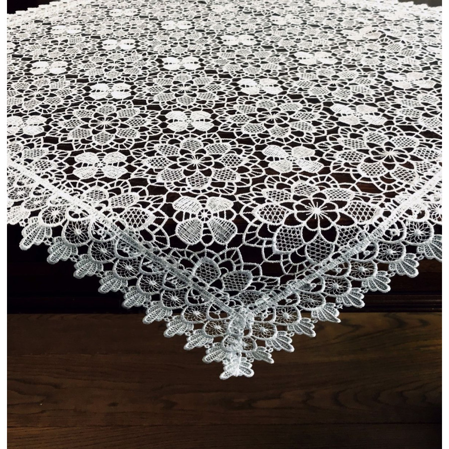 Obrúsok na stôl je vyrobený z dekoratívnej látky, lemovaný a ozdobený čipkou. Má vlastnosti chrániace pred škvrnami, vďaka čomu je veľmi praktický. Dekoračný obrus dodá Vášmu stolu poriadnu dávku elegancie.