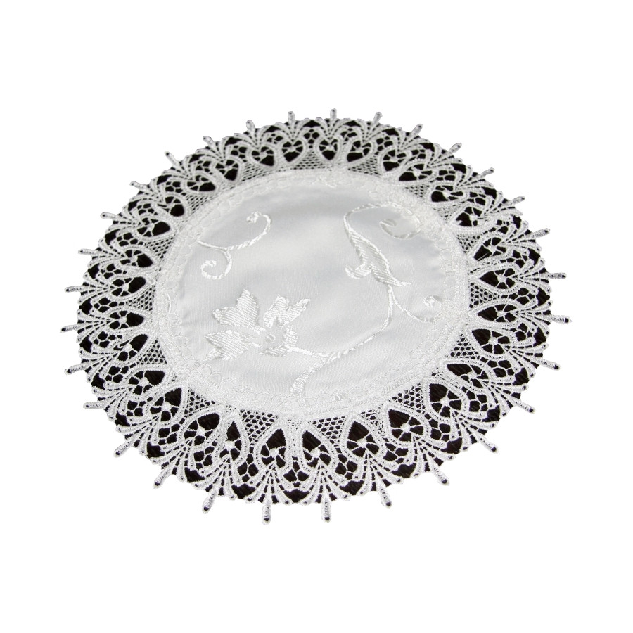 Obrúsok na stôl je vyrobený z dekoratívnej látky, lemovaný a ozdobený čipkou. Má vlastnosti chrániace pred škvrnami, vďaka čomu je veľmi praktický. Dekoračný obrus dodá Vášmu stolu poriadnu dávku elegancie.