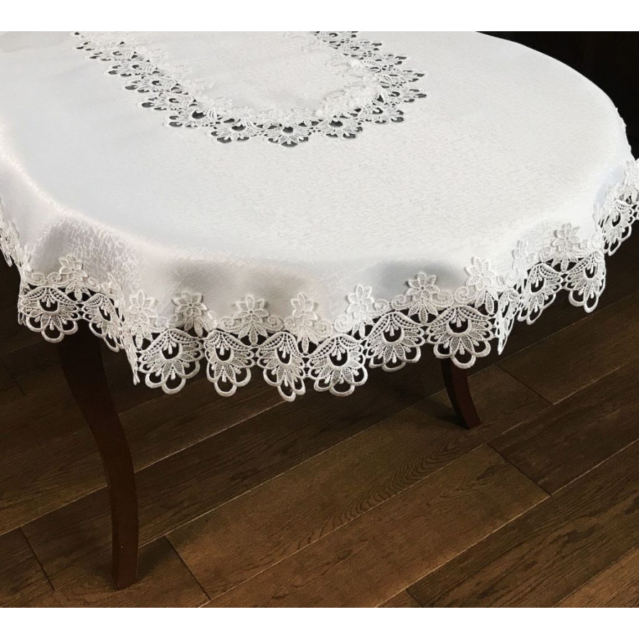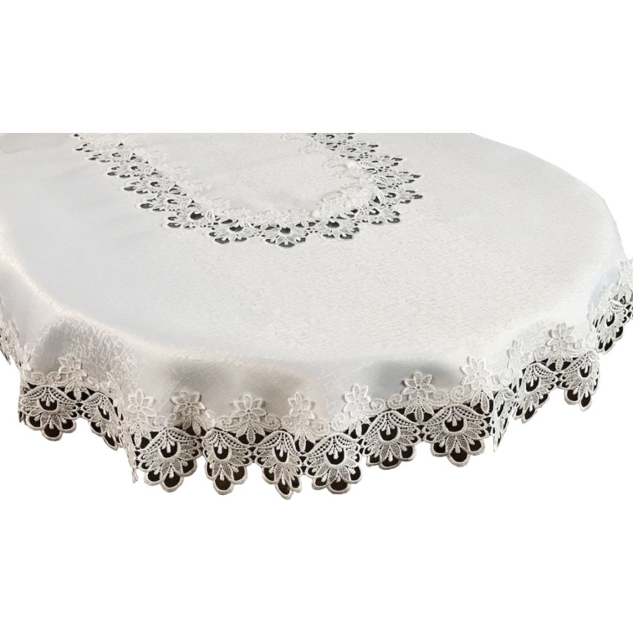 Obrus oválny v bielej farbe s čipkovaným lemom