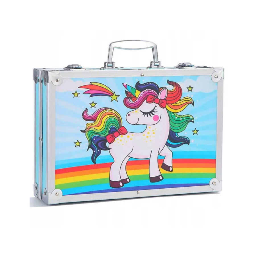 Set kozmetiky pre dievčatko 3+: kufrík so zrkadielkom, prvky na líčenie a úpravu (tiene, laky na nechty, rúž, príslušenstvo). Rozmery škatuľky: 26,2×19,4×5,5 cm. Kozmetika zmyvateľná vodou, bezpečná pre deti.