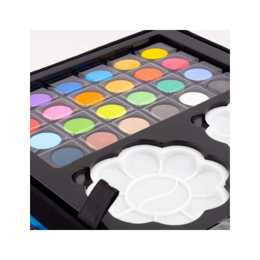Obojstranná tabuľa s počítadlom. Kriedovo-magnetická tabuľa slúži na kreslenie kriedou po čiernej strane a špeciálnym fixom priloženým v sade po bielej strane. Rám vyrobený z dreva. Plocha na písanie: 28,5 x 28,5 cm. Celá tabuľa: 42 x 32,5 cm.