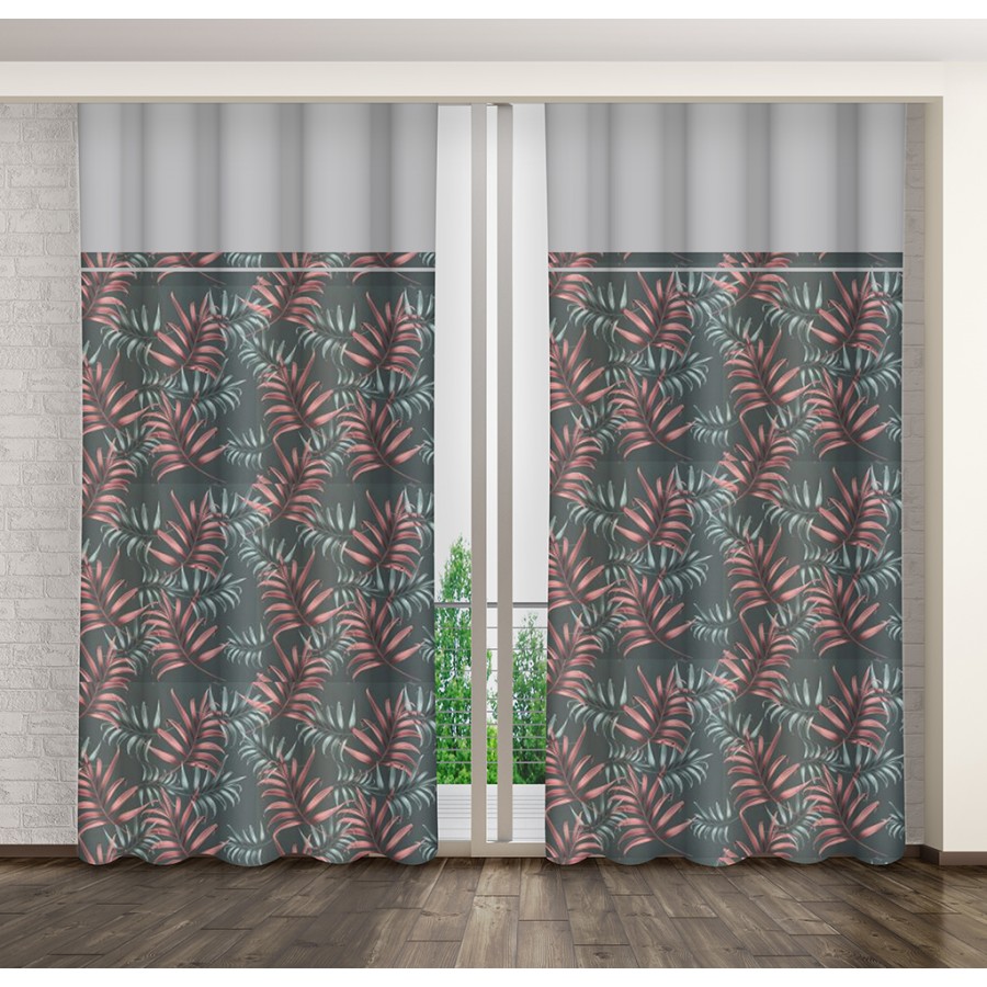 Sivý stredne zatemňujúci záves s rastlinným motívom
