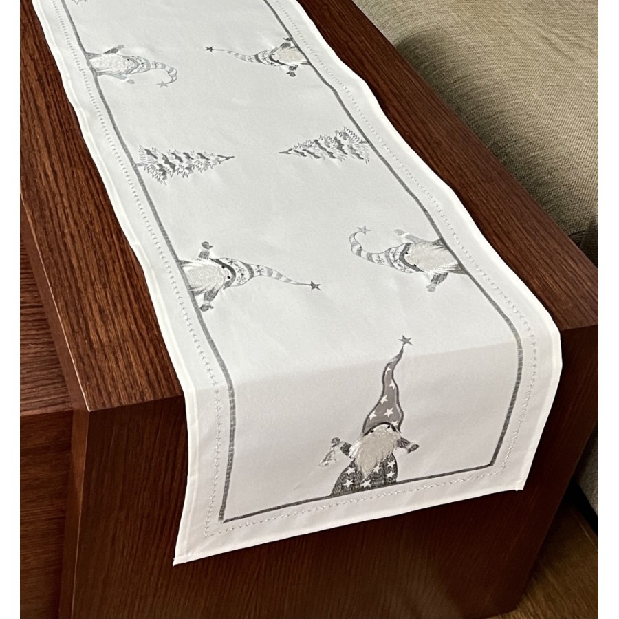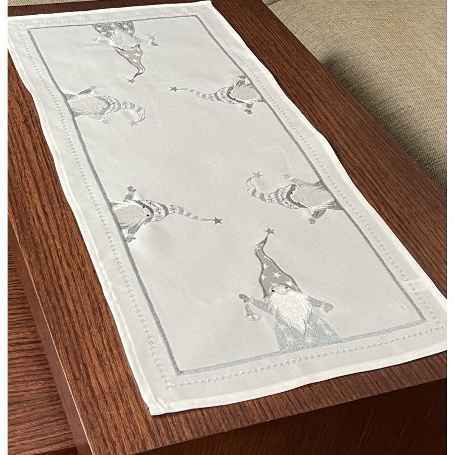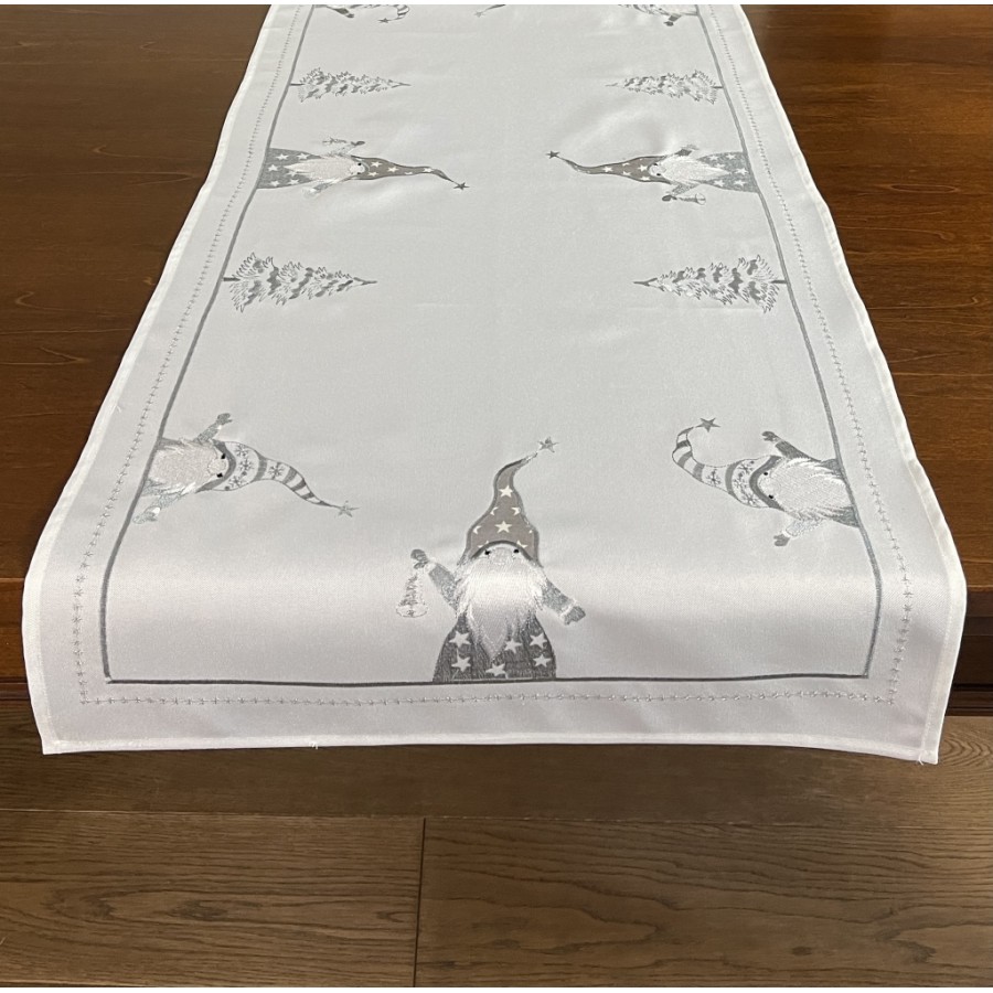 Behúň je vyrobený z elegantnej dekoračnej látky. Je zdobený výšivkou s vianočnou tematikou. Táto látka má vlastnosti, ktoré zabraňujú absorpcii škvŕn, vďaka čomu je veľmi praktická a ľahko sa používa.