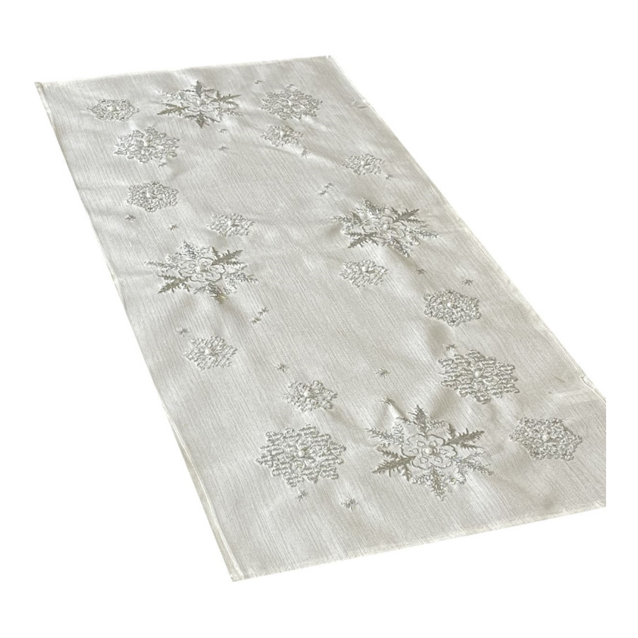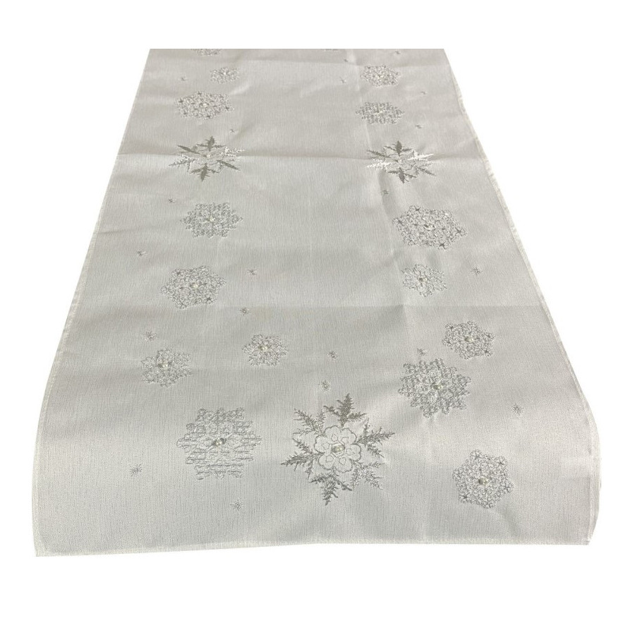 Obdĺžnikový vianočný behúň zdobený výšivkou snehových vločiek