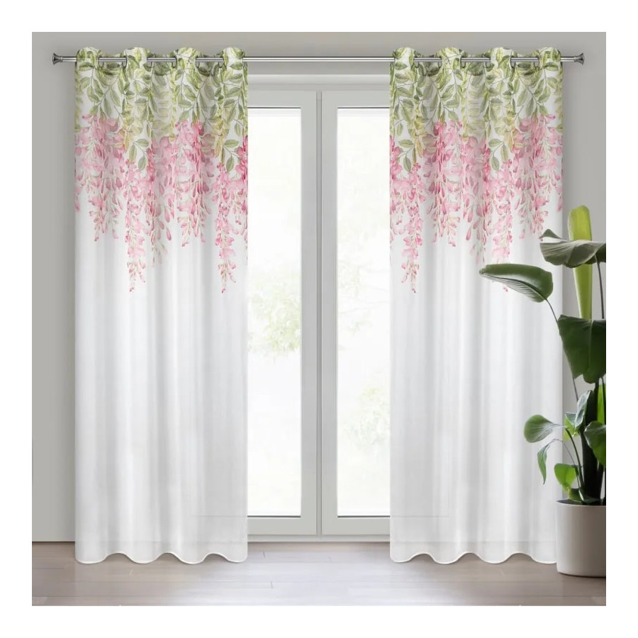 Biela záclona s kvetinovým motívom