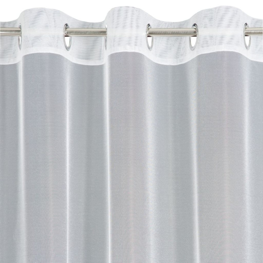 Biela záclona s ozdobným pásikom so zavesením na kruhy