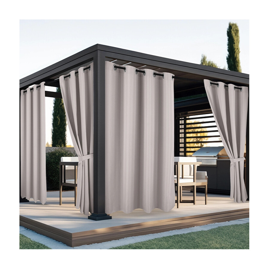 Nepremokavý záhradný záves so zavesením na kruhy do altánku/na terasu so stuhou v svetlo pieskovej farbe