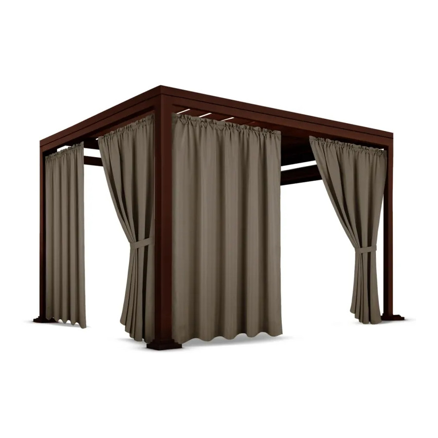 Nepremokavý terasový záves so zavesením na tunel so stuhou v hnedej farbe
