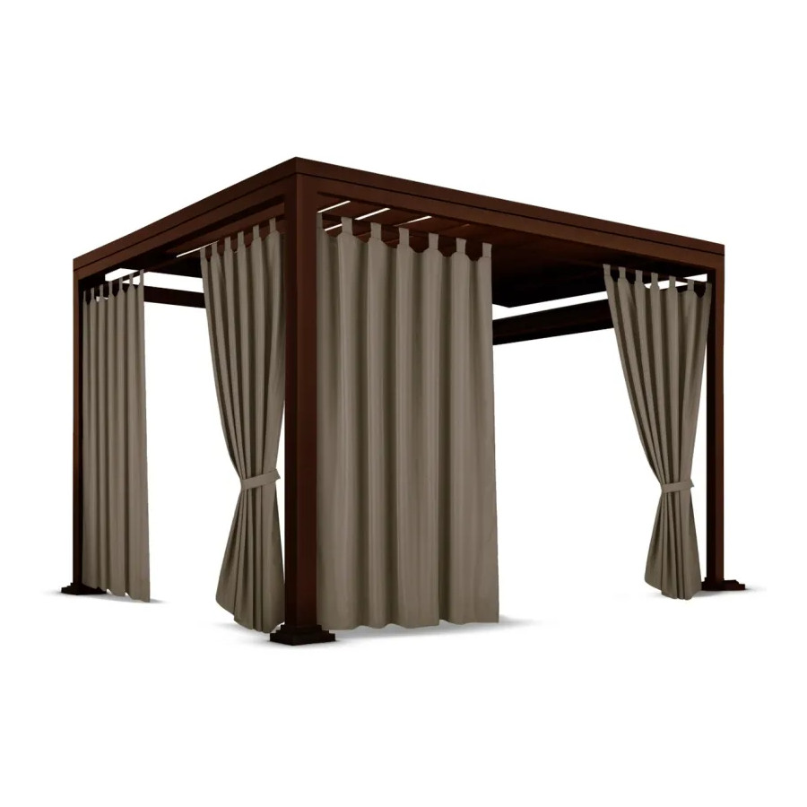 Nepremokavý terasový záves so zavesením na pásky v hnedej farbe so stuhou na uviazanie
