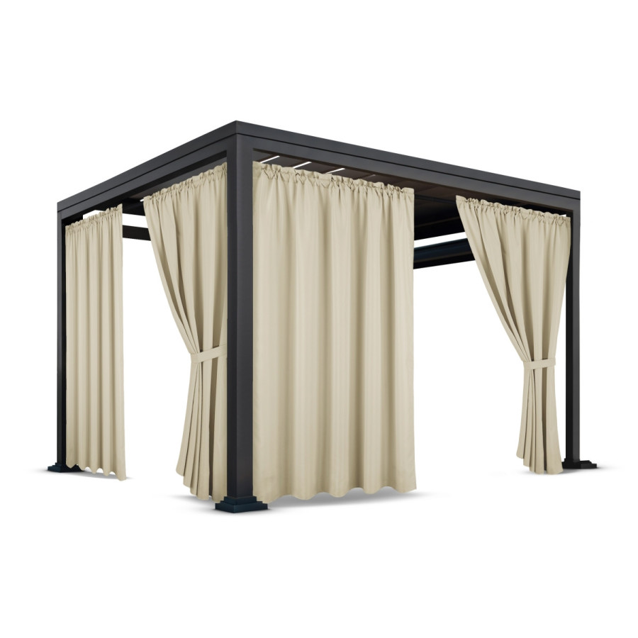 Záves so zavesením na tunel nepremokavý na terasu/altánok v béžovej farbe so stuhou na uviazanie